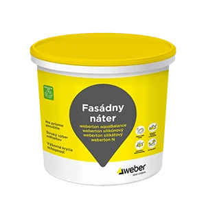 Prémiový fasádny náter obsahujúci silikónovú disperziu, hydrofilný, bez obsahu biocídov, pripravený na priame použitie. Na ručné a strojové spracovanie. Obzvlášť vhodný na pretieranie fasádnej omietky weberpas aquaBalance. Vďaka špeciálnej technológii má náter hydrofilné vlastnosti, ktoré regulujú vlhkosť a zabezpečujú rýchlejšie vysychanie povrchu po daždi či rose. Suchý povrch minimalizuje riziko rastu rias a plesní, čo udržiava fasádu dlho čistú bez potreby navyše pridaných biocídov.
